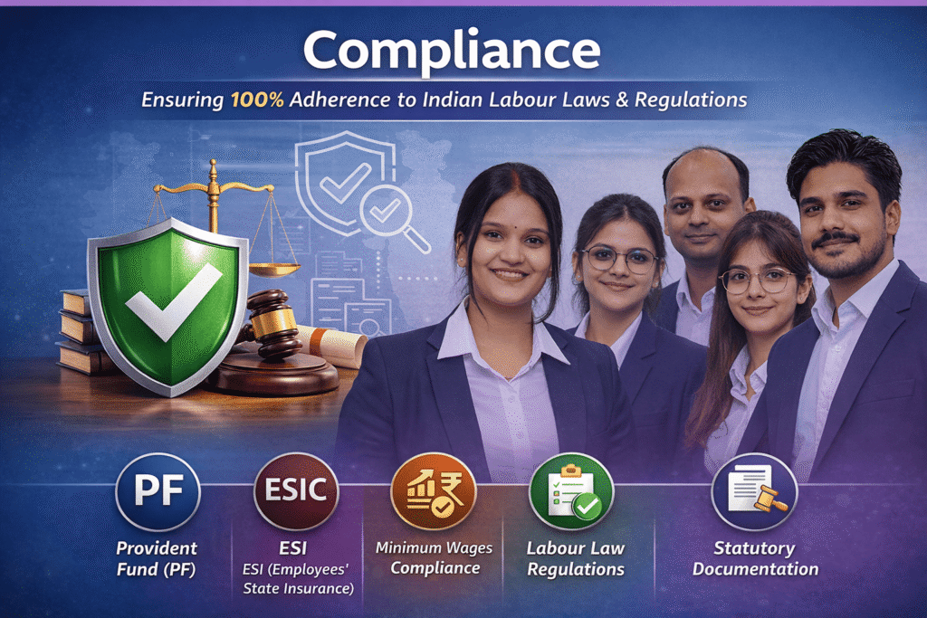 , we offer compliance-first, cost-effective, and scalable staffing solutions tailored for the Indian business ecosystem. From temporary and contract staffing to full-time placements, we help you build a flexible workforce that meets your dynamic operational needs—while staying fully compliant with Indian labor laws.